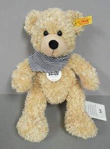 Fynn Teddy bear with bandana, is 28 cm in size (11 inch), 5-way jointed, made from beige colored plush, is not limited, was originally not issued with a collectors box/certifcate of authenticity and was issued in 2012.